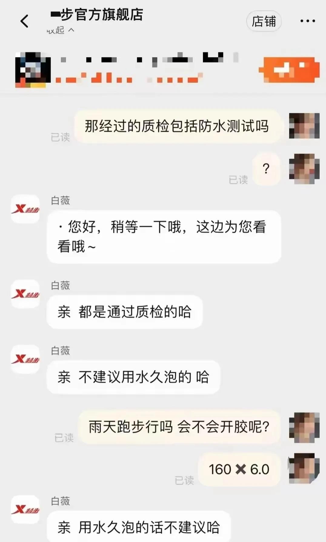在舆论的压力下,特步官方给出了回应,表示一个月内非人为损坏的鞋子可享受三包服务。但对于鞋子是否适合雨天使用的问题,客服的答复却显得含糊其辞,这并未能平息消费者的不满。