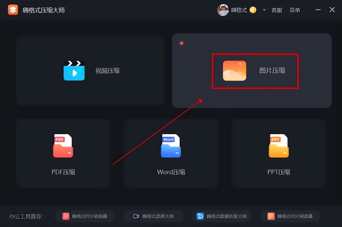 1、在电脑上打开安装好的“嗨格式压缩大师”,在首界面中点击“图片压缩”。
