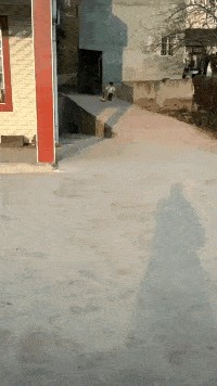 小孩和滑板车处出来感情了,连摔跟头都保持动作一致