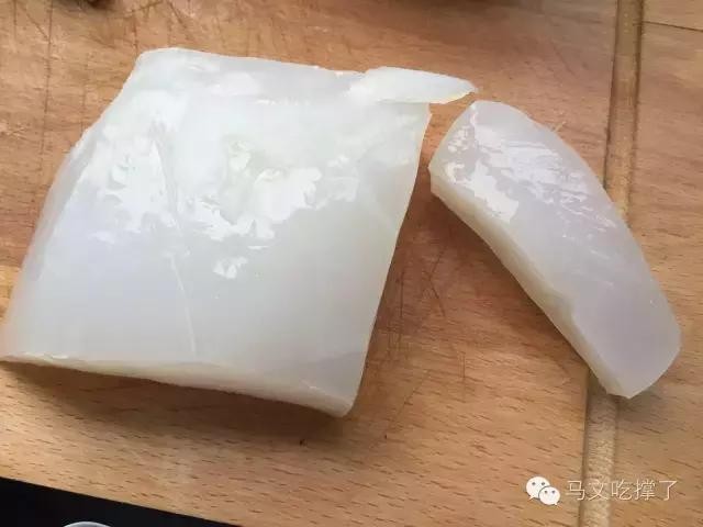 曼波鱼皮收到的时候是这样一整块的白色物体,很多朋友之前没看过曼波鱼皮,所以收到货的时候会以为这是其中一块冰袋… (然后有人真的被阿姨当作垃圾丢了...)
