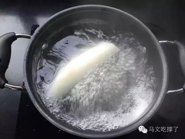 先退冰,让鱼肉回到软Q的状态,洗净之后,丢进滚水中煮10分钟。