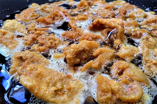 炸酥肉,调糊是关键,调糊时需要谨记3个技巧,第一个是花椒面不能少,才能做出正宗小酥肉的口感,第二个是面粉淀粉这两种都要用到,并且比例一比一,第三个是调糊记得用啤酒,而非清水。
