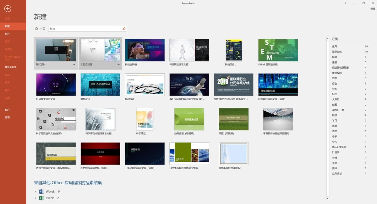 而且这些模板可以在office2016及以上的版本里搜索得到,新建PPT但是不要点击模板,在搜索里查找就可以啦。