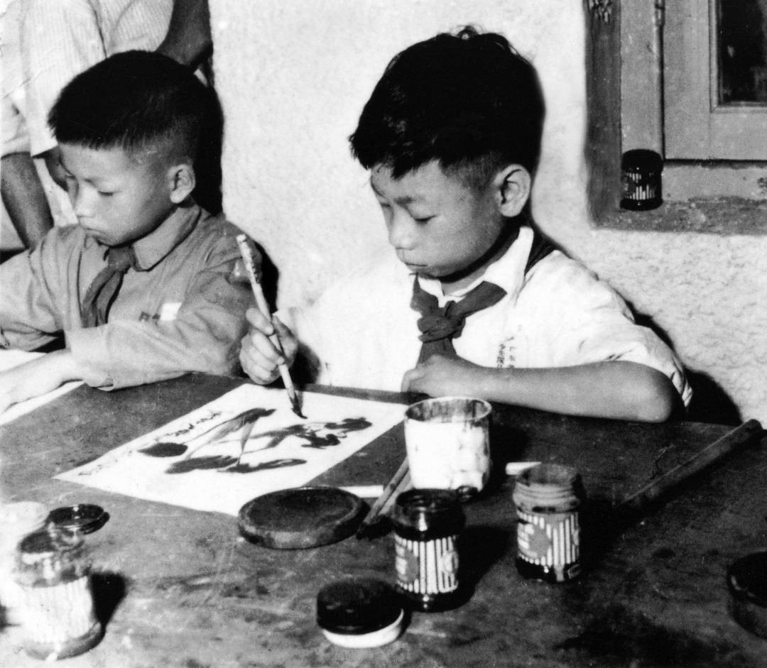 1959年9岁时在广东省少先队员代表大会上现场作画