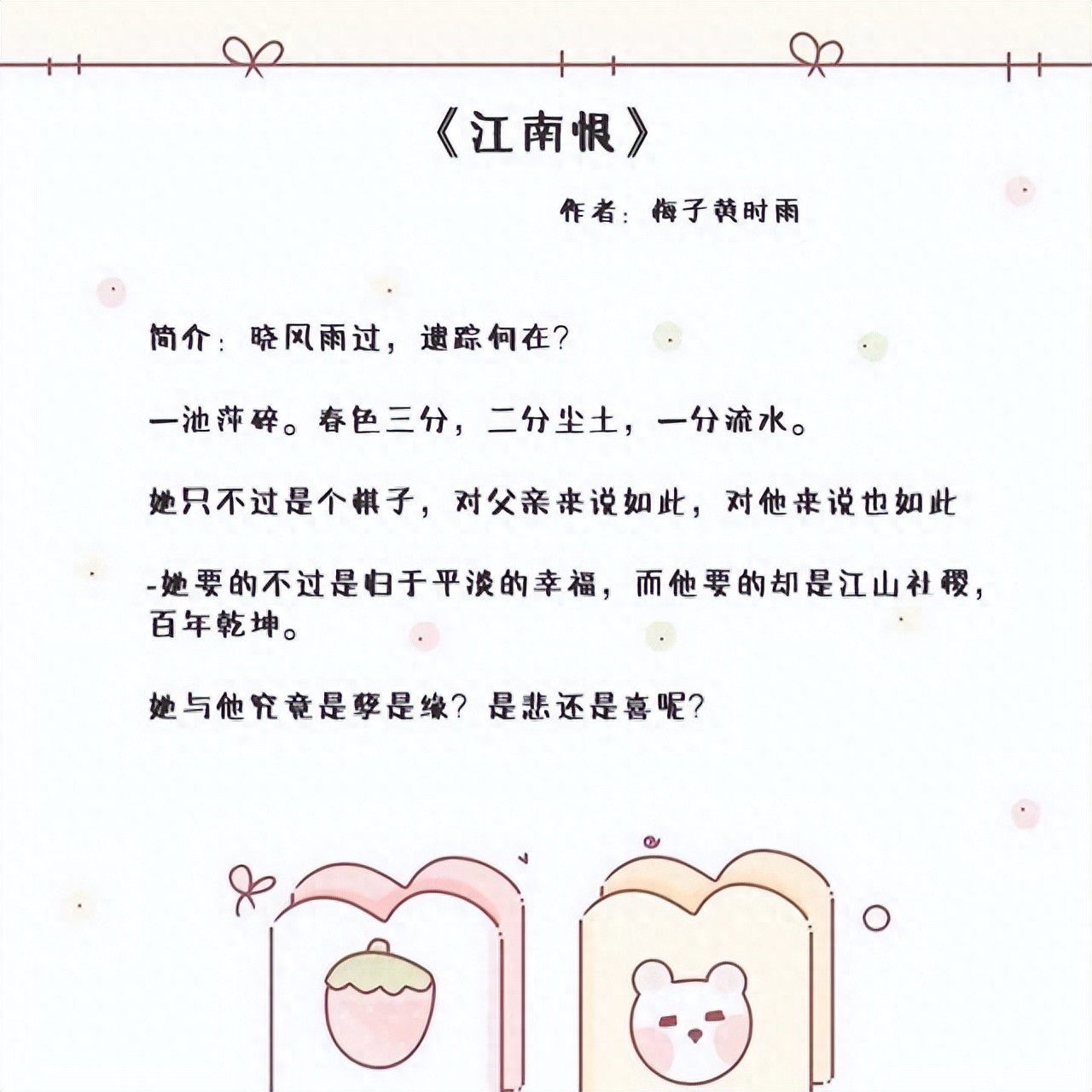 1、《江南恨》作者:梅子黄时雨