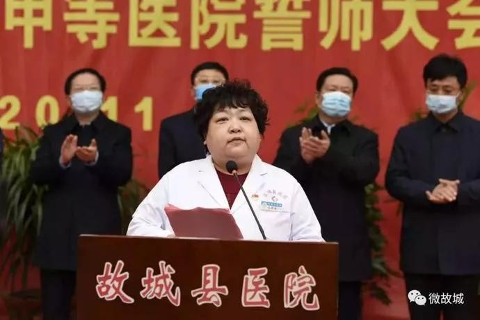 故城县医院院长居艳梅在衡水市第八人民医院(故城县医院)揭牌仪式暨故城县医院创建三甲医院誓师大会上发言