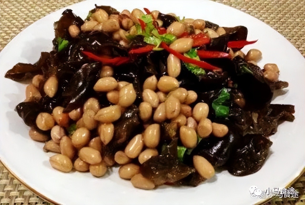 卤花生米拌木耳