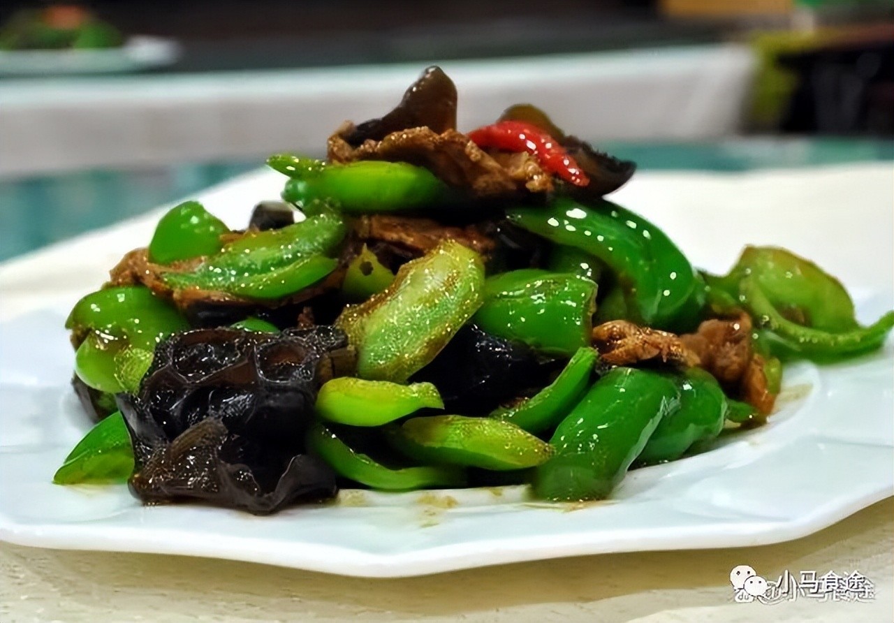 柿子椒炒木耳,即青椒炒木耳