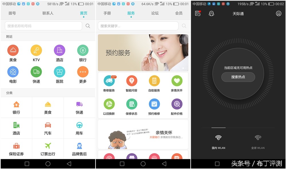 最新的EMUI 4.1系统中还加入了很多生活服务类的功能,在拨号界面加入了个“黄页”功能,还有个专门的“华为服务”应用,可以进行手机知识学习、故障咨询、预约服务等功能;而且还支持“天际通”功能,支持全球WLAN+移动数据一键接入,而且还有免费WLAN时长可以领取。