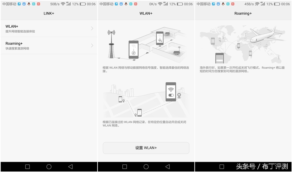 在最新的EMUI 4.1系统中,还加入了WLAN+和Roaming+功能。WLAN+可以让我们的移动信号始终处于最佳连接状态,而且还可以在特定的位置自动开启或关闭WLAN网络;Roaming+可以让我们在海外旅行的时候,以最短的时间搜索到可漫游的网络。