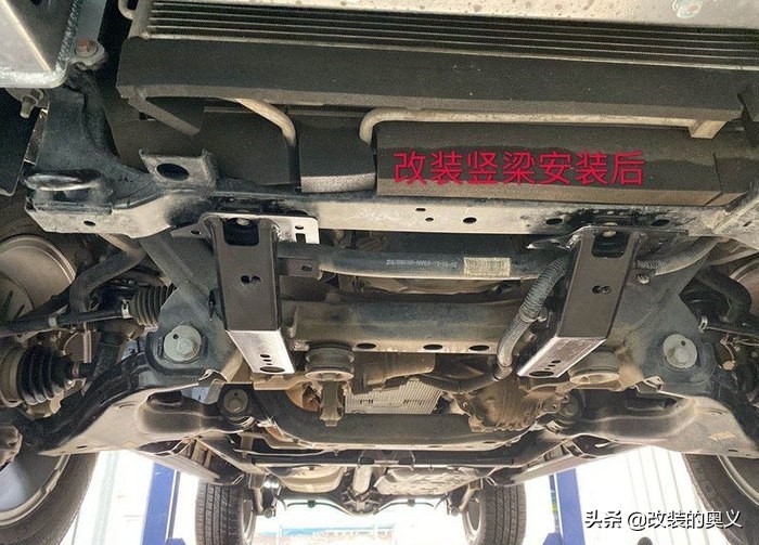但是平衡杆前移了不和避震器打架了,和原车小梁去打架了!这个就有了改装小梁