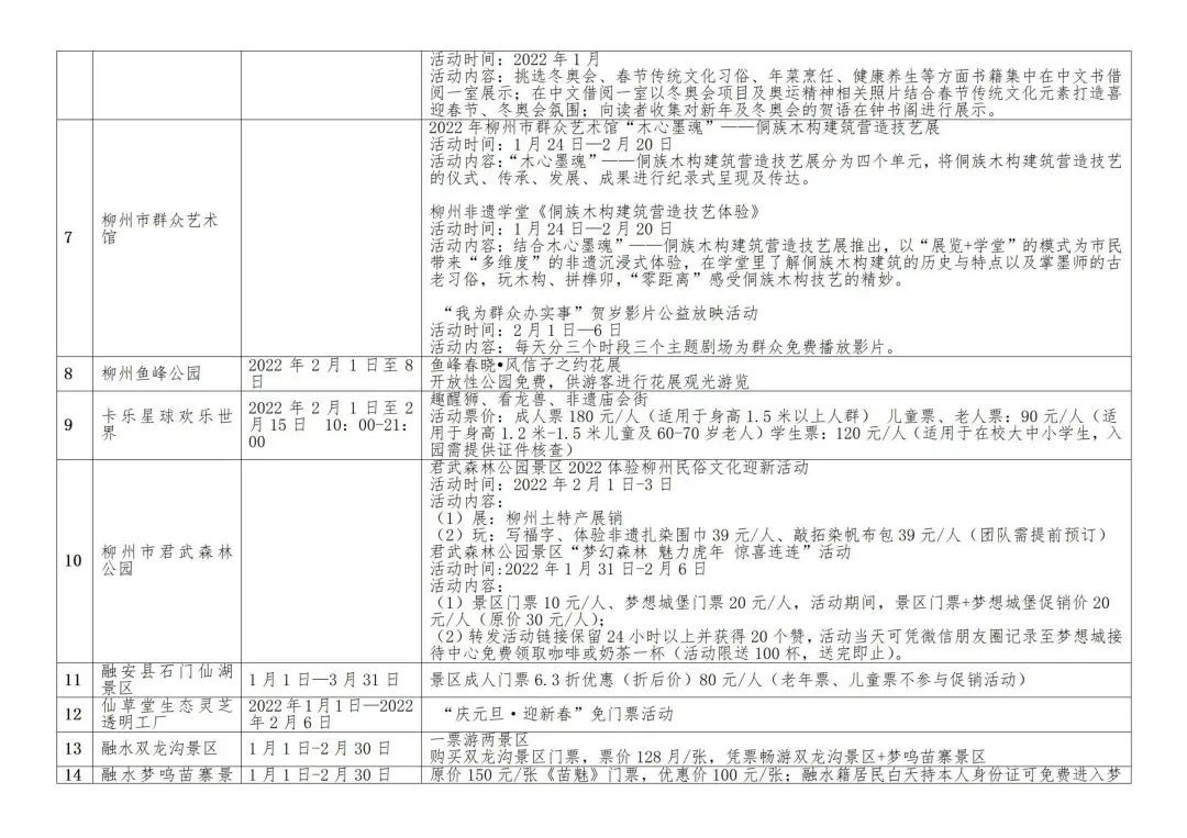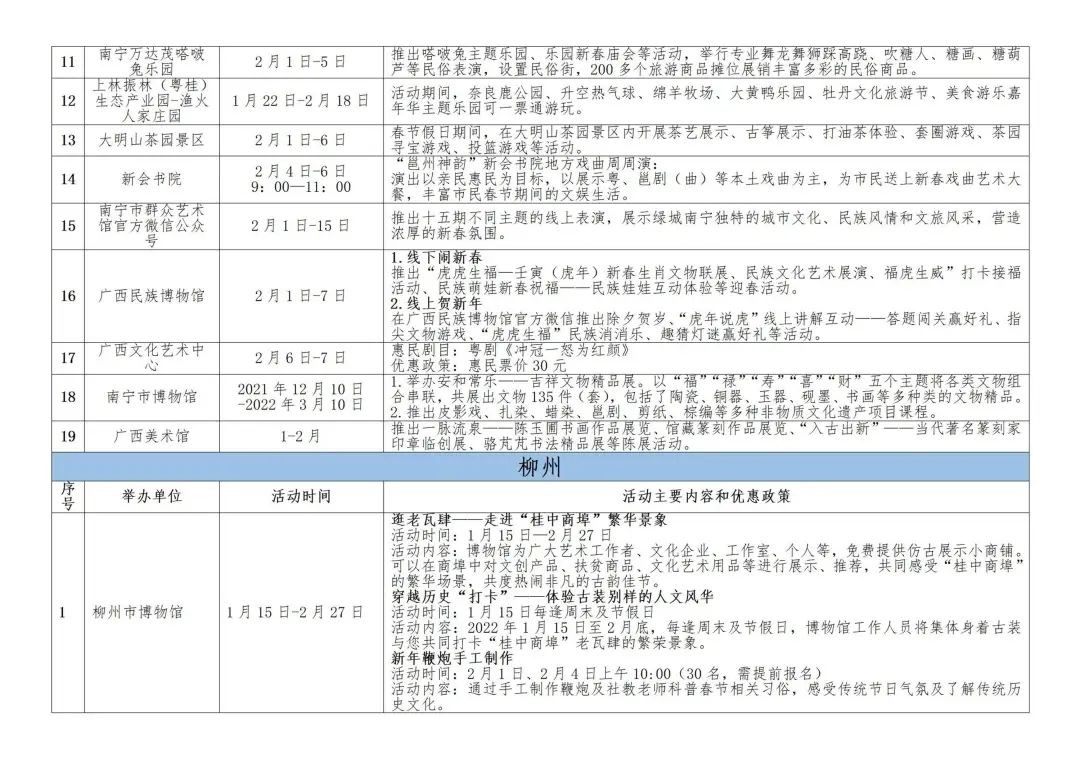 2022年全区春节假日期间文化旅游活动汇总