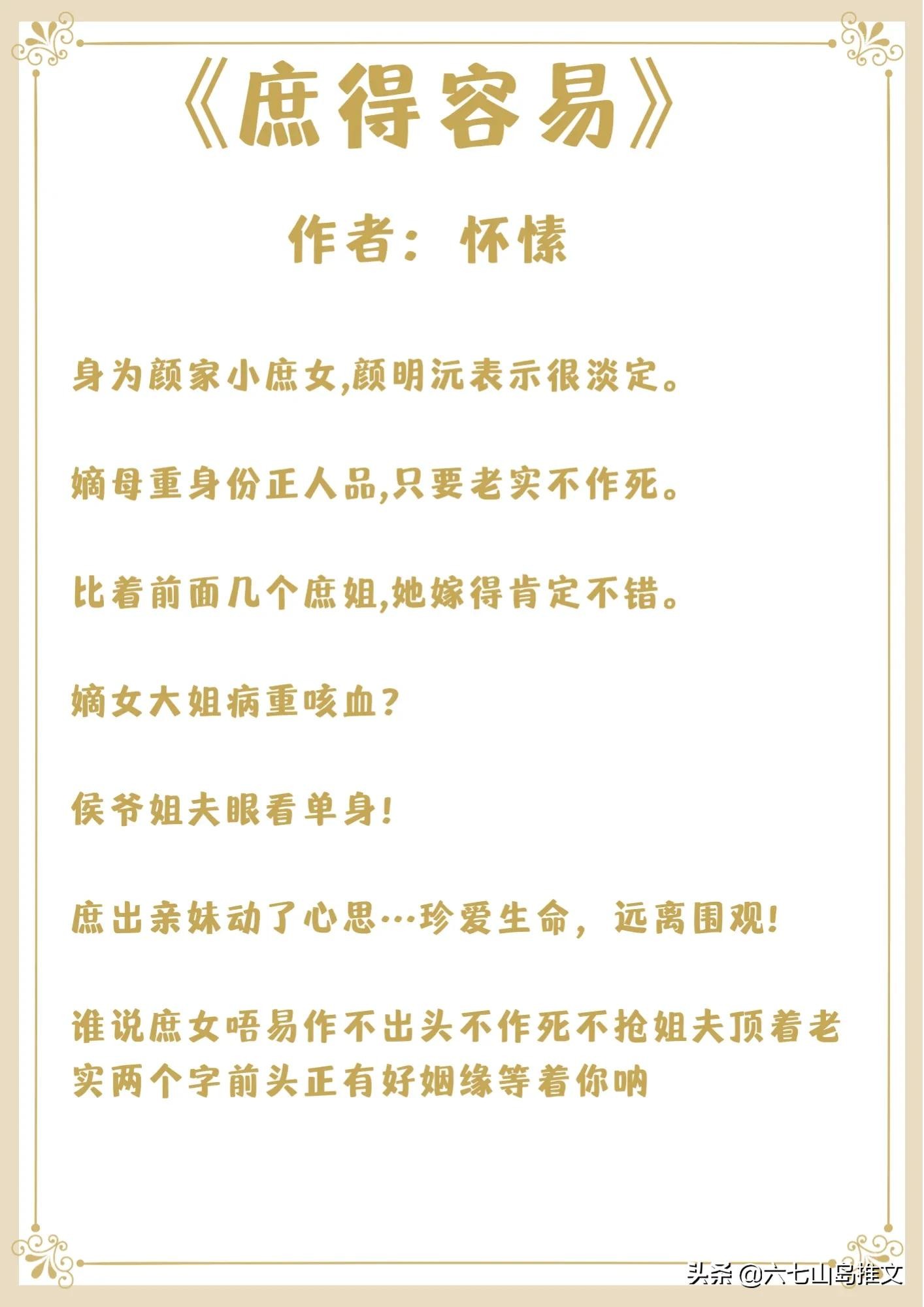 2.《庶得容易》作者:怀愫