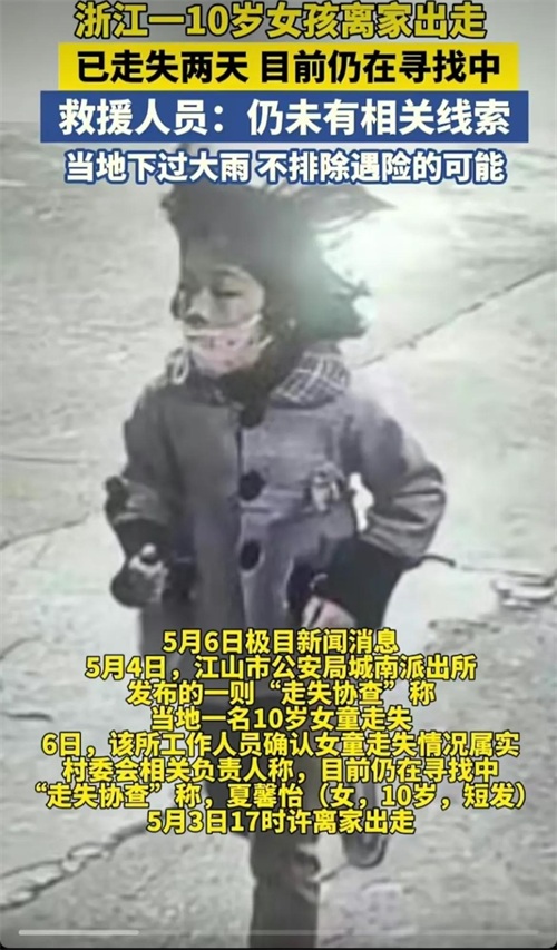 一名10岁的小女孩夏某某,竟然在凌晨时分离家出走,彷徨了整整3天3夜才被发现!