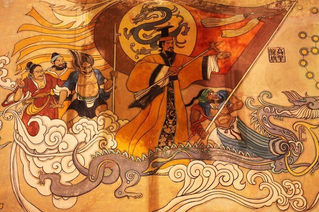 黄帝望着峡谷,深吸了一口气。现在到了决战的时候了。他神色紧张,命令说,应龙,时机到了!应龙得令,飞到了堤坝的上方。他也十分紧张,胜败在此一举。他用尾巴一扫,堤坝顿时破防,水流如一条水龙一般咆哮着奔涌而下。