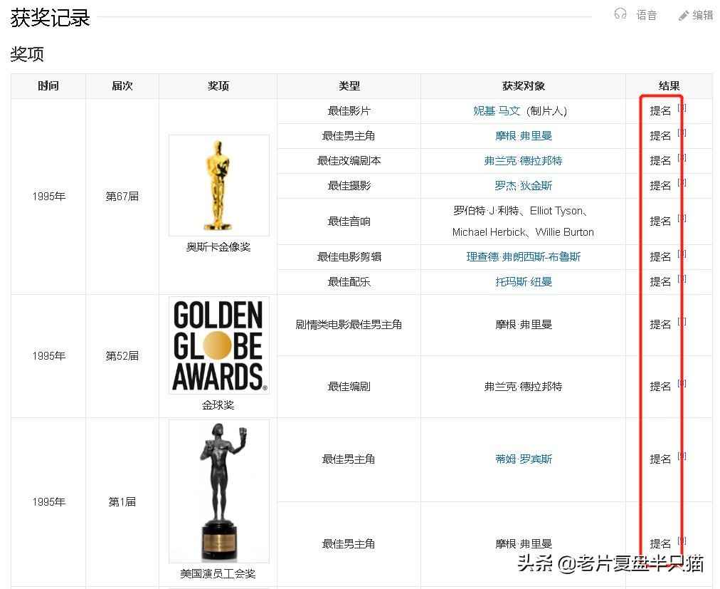 如果去查看当年的记录,你会发现那一届奥斯卡上,《肖申克的救赎》获得最佳男主角提名的演员,不是饰演安迪的提姆罗宾斯,而是饰演瑞德的摩根弗里曼。
