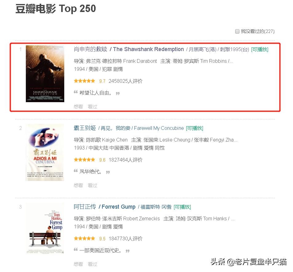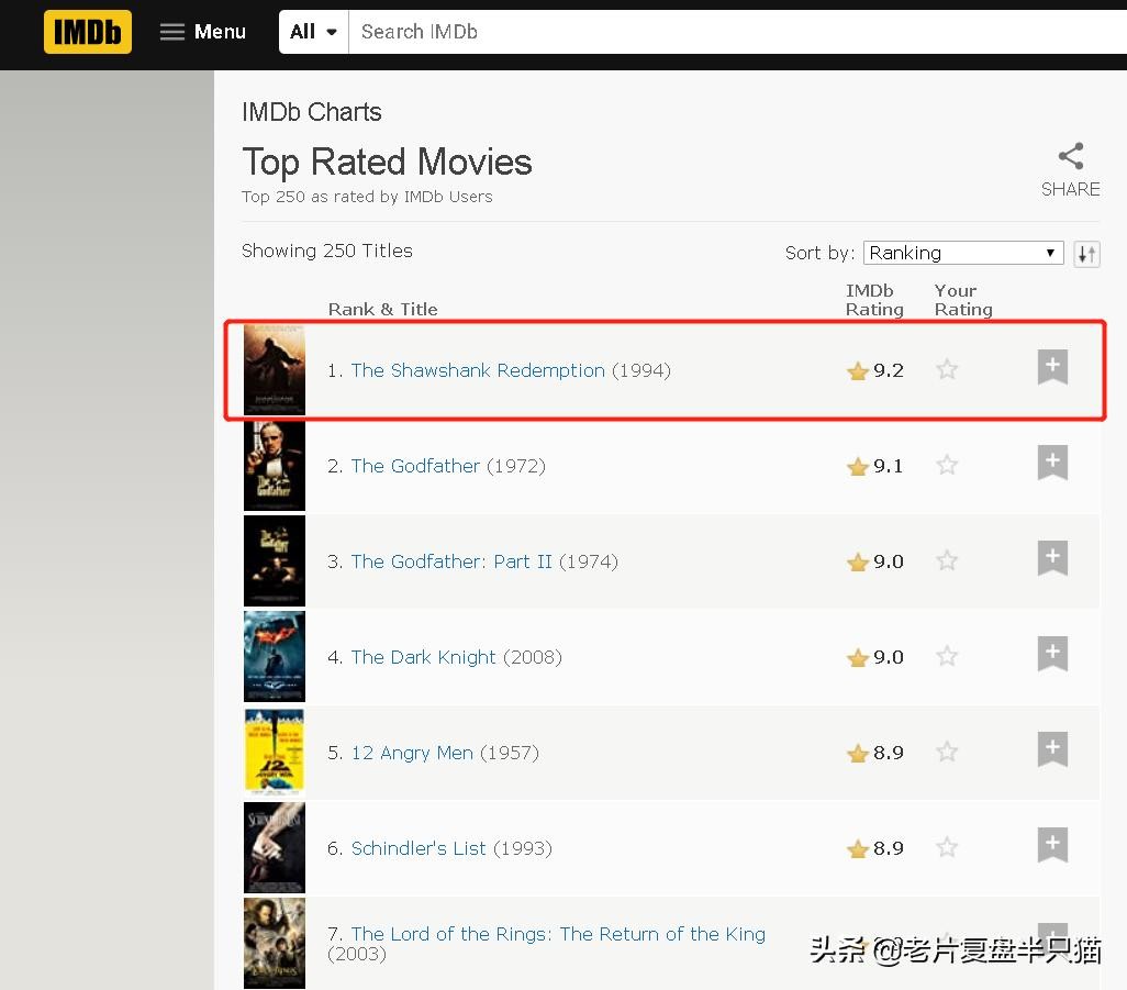 不过有一点我要澄清的是,我心目中的第一,并不是《肖申克的救赎》,请告诉我你心目中的第一,也许下一期复盘的,就是你心中的第一。