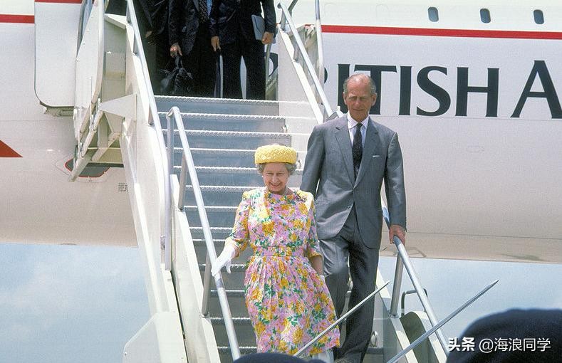进行皇室外访的英女皇伊丽莎白二世和菲利普亲王步下协和飞机