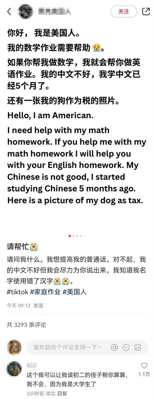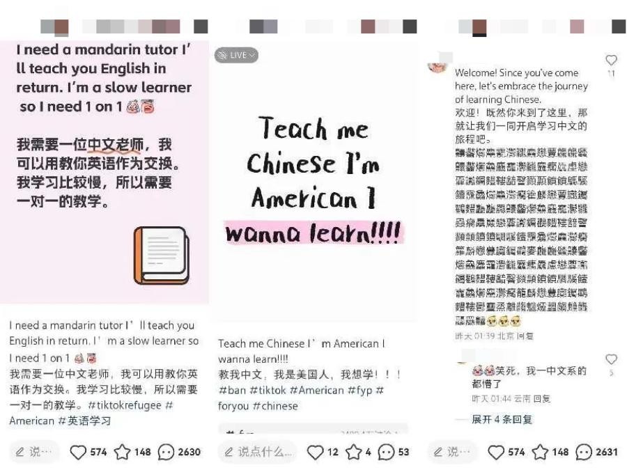 他们发布的首条帖文都不约而同地在寻求“中文外教”