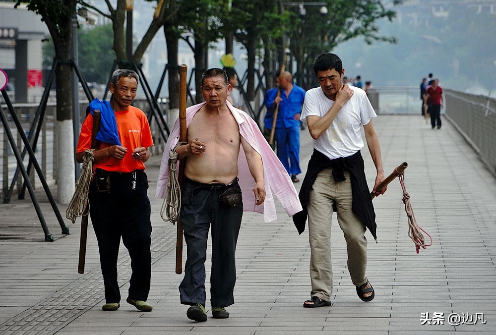 朝天门码头最后的棒棒,最辉煌的时候,朝天门起码有一半都是棒棒。那时在大街上随便吆喝一声“棒棒”,好几个“棒棒”就会争先恐后地来抢活路。