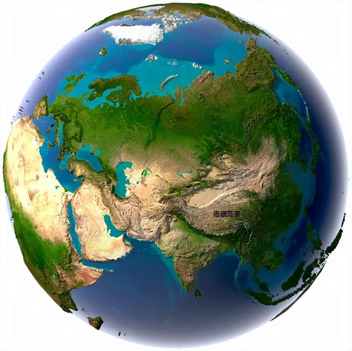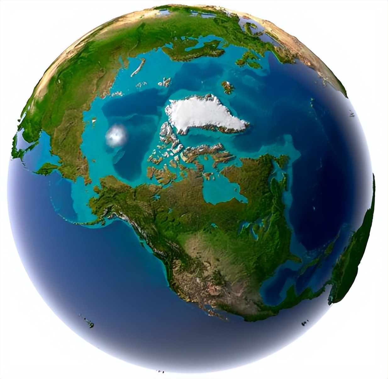 10、从北极看地球,中间白色的是格陵兰岛。北美、北欧。