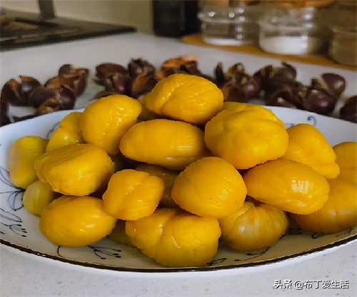 3、煮好的板栗要趁热剥去外壳,等完全凉透,里层的皮子就会粘附在果肉上,不好剥离。