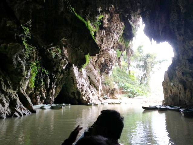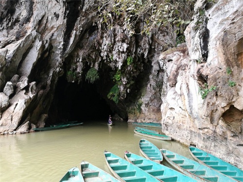 世外桃源的核心景区就是坝美村,是四面环山的一片洼地,坝美河穿村而过。坝美河的上下游分别有一个大型溶岩水洞与山外的河道相连,水洞比较高大开阔,正常水位情况下可以开行小船。