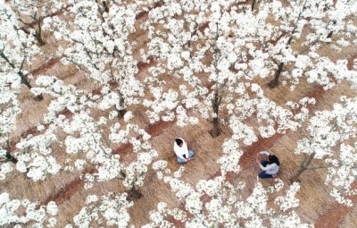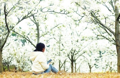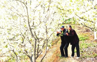 每年的春天,我都会带上父母去赵家沟看看油菜花和那里房前屋后的梨花,有三块地是成小片的梨花地。如果梨花一枝春带雨,雨水太多,就不会出现梨花白。现在新品种的梨树,开花时,往往先发出了嫩黄绿的树叶;而老品种的梨树,开花前,冒出的树叶少,在盛花的时候,春风荡漾,千朵万朵,压枝欲低,梨花白如雪,晶莹剔透,沁人心脾。实际上,梨花如雪的时间非常短,看到梨花白的时候,繁华的春天,已过了一半,梨花很快就会谢了。