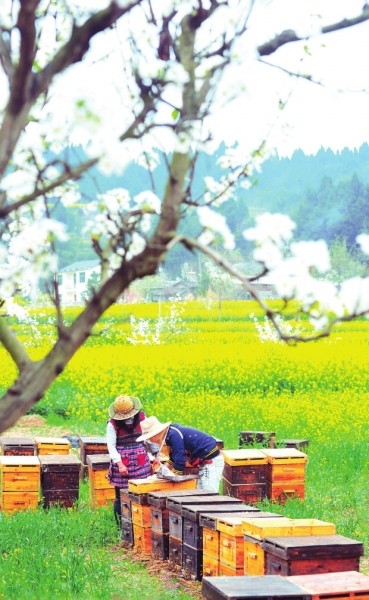 梨树下的养蜂人家。