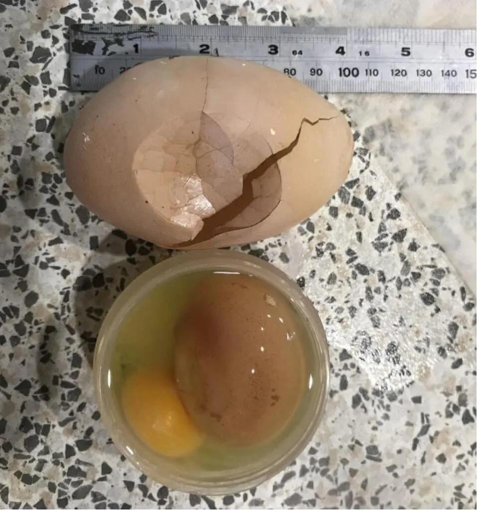 家里的鸡下了10公分的蛋,里面还有一个蛋