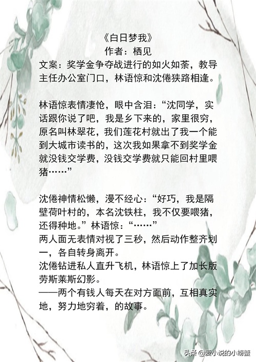 今天给大家推荐一些校园文啊,这两天高考又算是引发大家一些回忆吧,想念自己的校园时光吧,小说就是可以看到一些我们普通人没能经历的浪漫特别的校园,也许我们没谈过小说那种酸甜的青春恋爱,但我可以在小说中看到我喜欢的情节,剧情,这也是小说吸引我的地方吧!所以今天又给大家 推荐一些校园文呀,还有大学的。