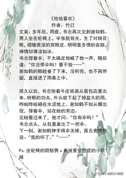 竹已大大真的是写校园文的神仙作者!《偷偷藏不住》《难哄》《奶油味暗恋》……每一篇都很经典,她的小说不能错过!