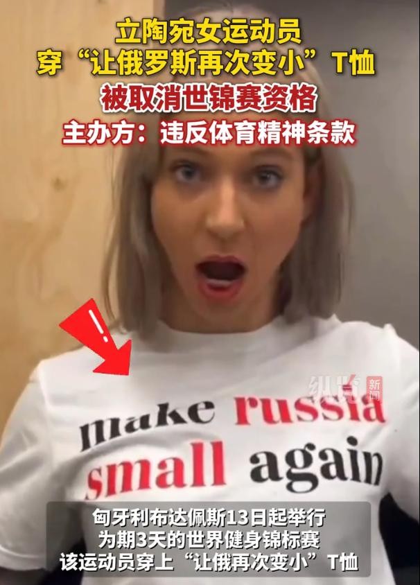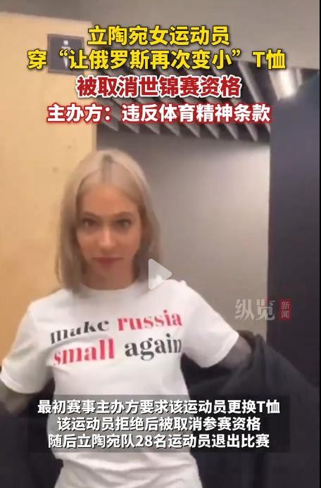 事件的起因是一名立陶宛女运动员科内莉娅·杜戴特,在登场时穿着一件印有“让俄罗斯再次变小”字样的T恤。这一行为立刻引起了广泛的争议和关注。T恤上的文字不仅带有明显的政治挑衅意味,还触及了俄罗斯的敏感神经,严重违背了体育赛事的公平、公正和尊重原则。