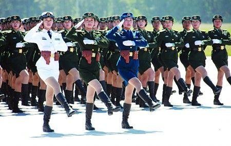 黑色的长筒靴,金色的腰带,剪裁干净利落的军服,加上精致统一的帽子,如今的女兵服装正像我们的女兵军队一样整齐划一气势磅礴。