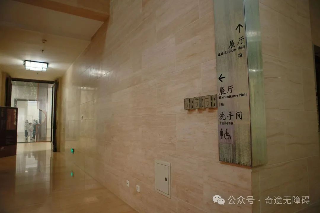 中国美术馆做了一些无障碍的标识和指引,不锈钢材质的底搭配黑色的字体,辨识度不高,还会反光。