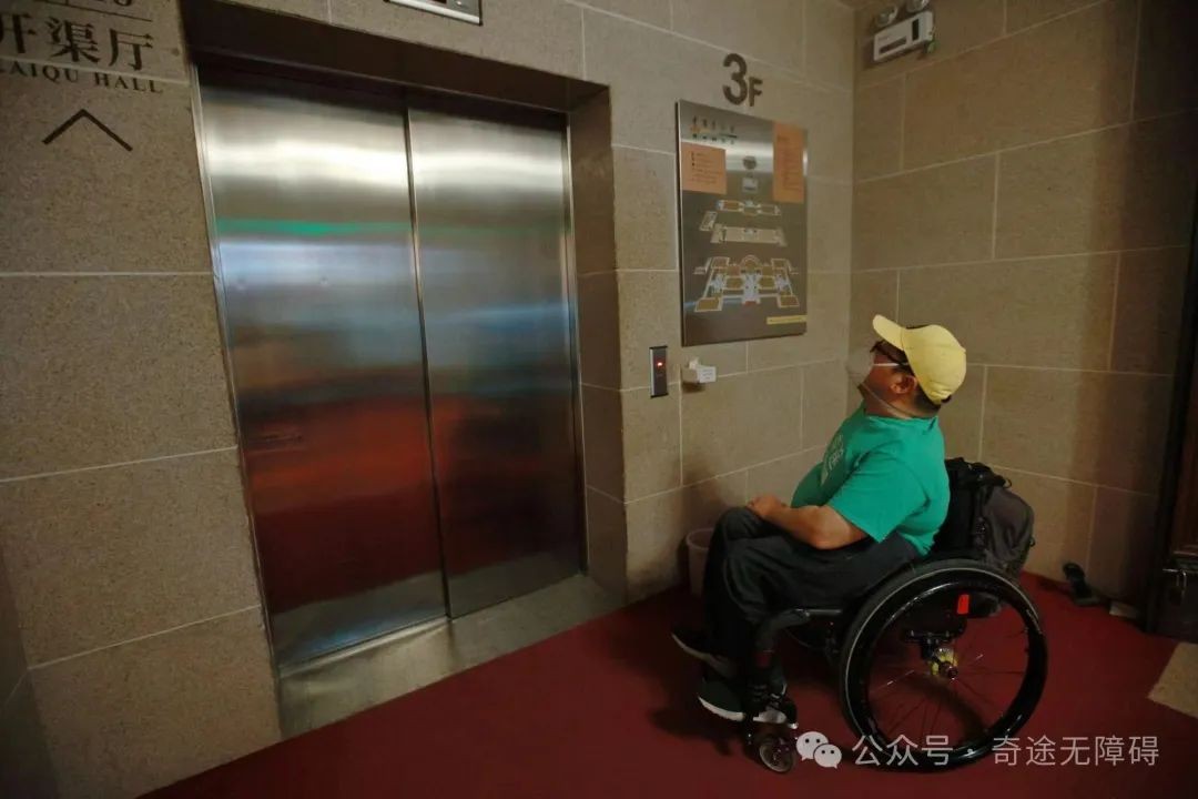 美术馆内有多部垂直电梯,但不是每部电梯都有低位按钮。
