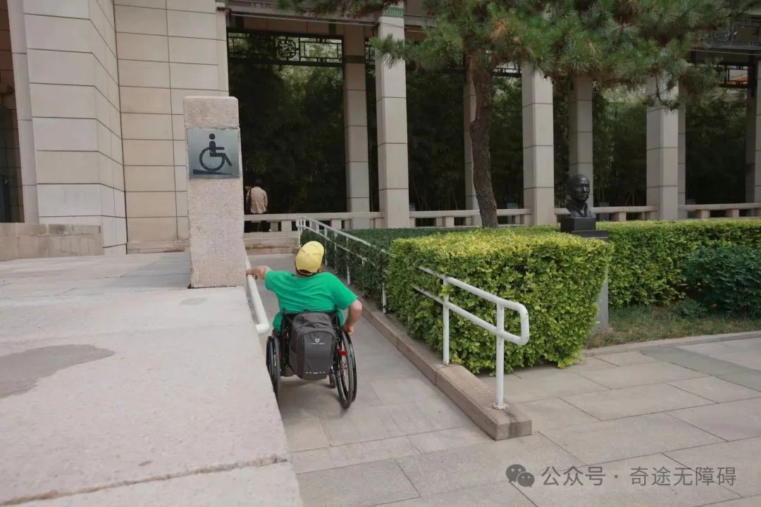 美术馆大门的旁边有无障碍坡道,坡道旁边有扶手,并且做了标识。