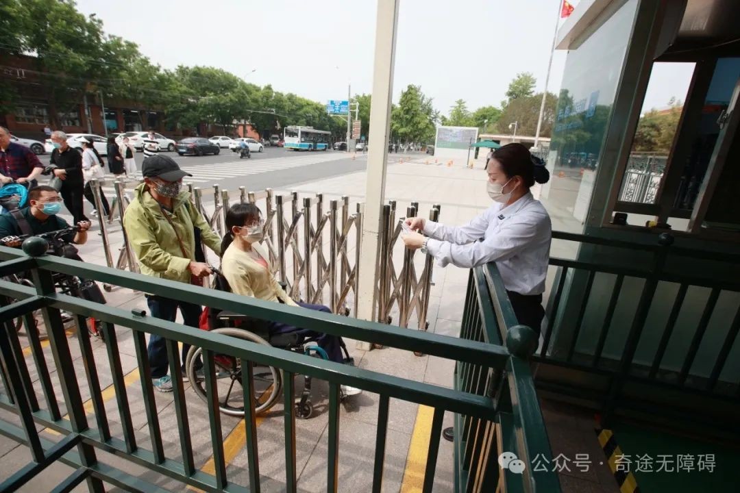 中国美术馆为残障和老年人等有无障碍需求的旅客提供绿色专用通道。工作人员会在这个绿色通道为残障伙伴服务和检票。