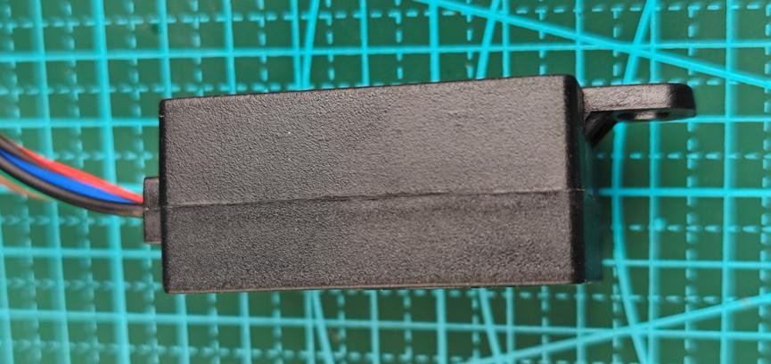 看侧面发现这个防盗器是由两片外壳组合在一起的,看起来很严丝合缝,没有一个螺丝。似乎是用超声波焊接或者热熔焊焊接起来的。用手掰了掰,发现外壳有轻微变形之后,这个缝依然是严丝合缝,看来确实是超声波焊接或者热熔焊一类工艺。