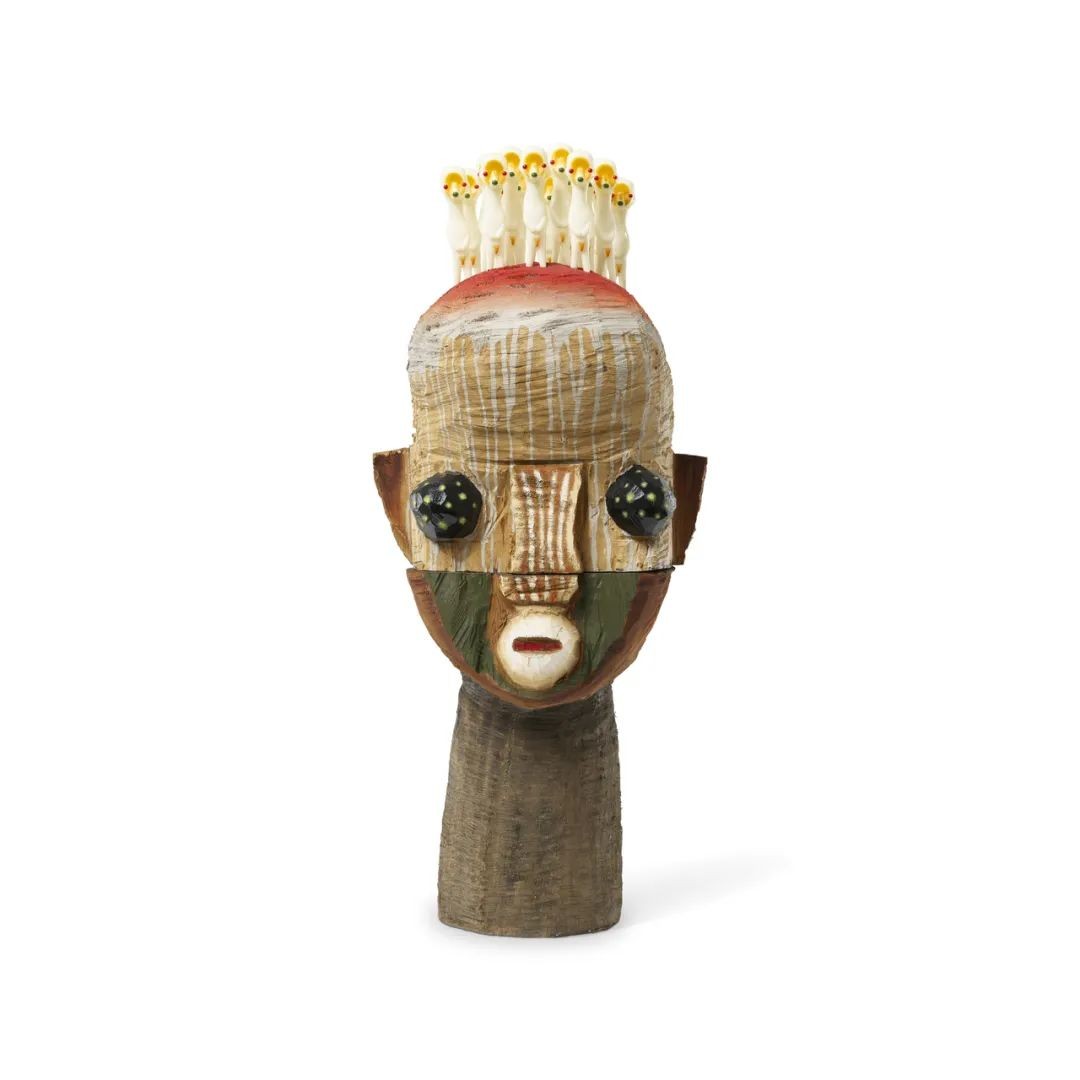加藤泉则另辟蹊径,在民俗文化中寻找自己的创作源泉。加藤泉出生并生活在日本岛根县,那是日本古文化的发源地及日本神道信仰代表神社“出云大社”所在地。加藤泉自幼便沉浸在神话气息浓厚的传统环境中,因此他的绘画和雕塑均带有日本神社文化的影子及对自然生灵的敬畏之心。本季香港春拍呈献的《无题》雕塑及头顶的小人像宛如孕育于天地之间的自然精灵,而画作《无题》中无限向下蔓延的手脚则如树根般深深扎根于大地。