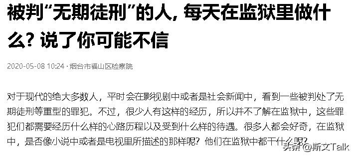 信息来源:烟台市福山区检察院-2020年5月8日,被判“无期徒刑”的人, 每天在监狱里做什么? 说了你可能不信