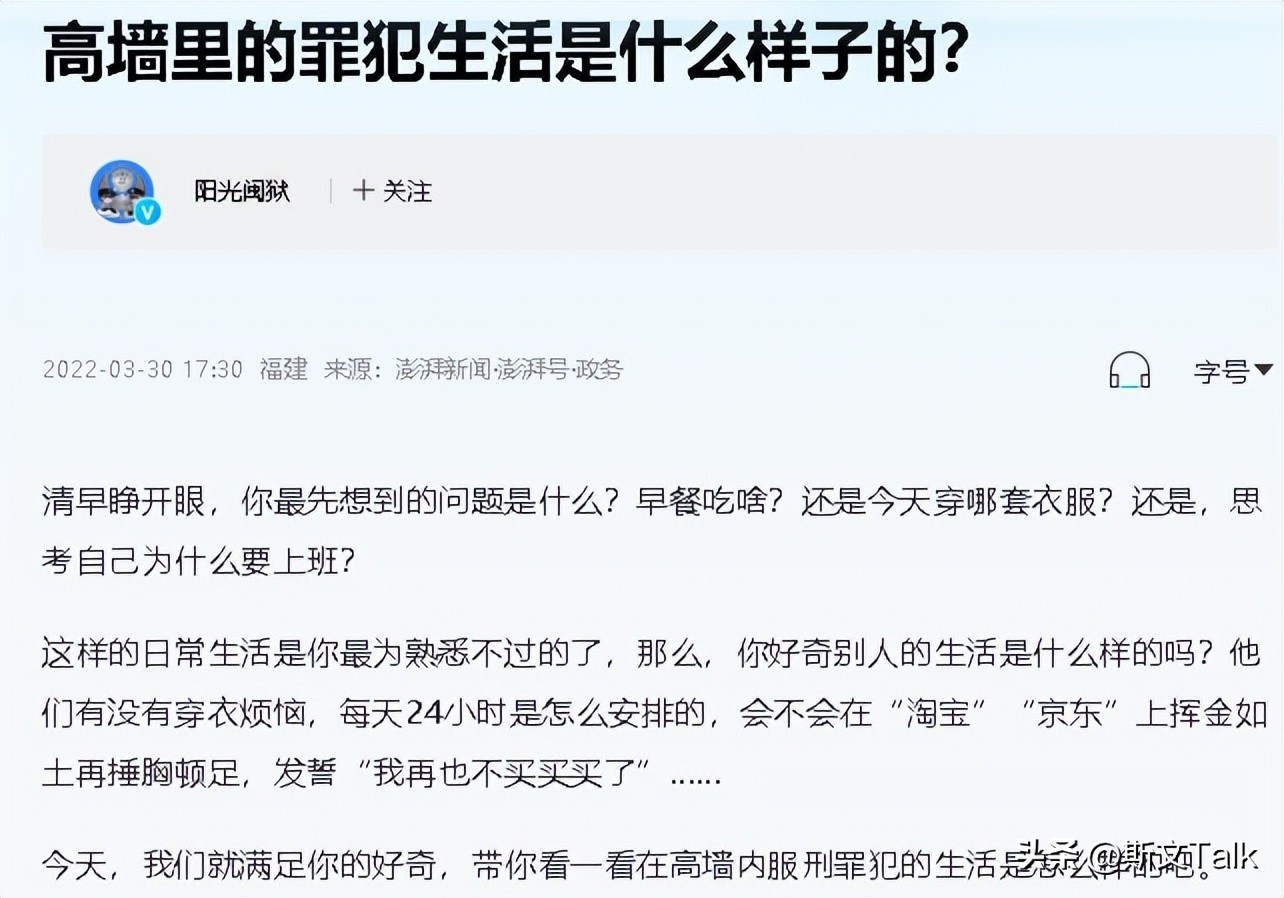 信息来源:澎湃新闻-2022年3月30日,高墙里的罪犯生活是什么样子的?