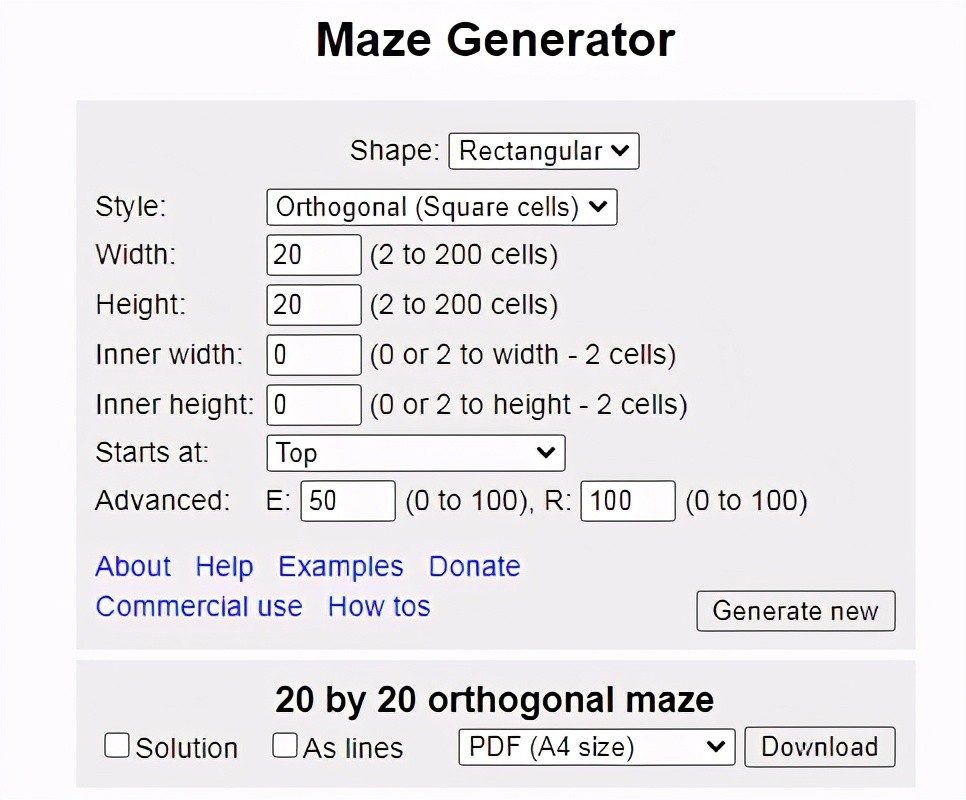 这是一个自动生成迷宫的网站,你可以根据自己的想法设计一个迷宫,打印下来解压玩。有方格迷宫,六边形迷宫和三角形迷宫可选。