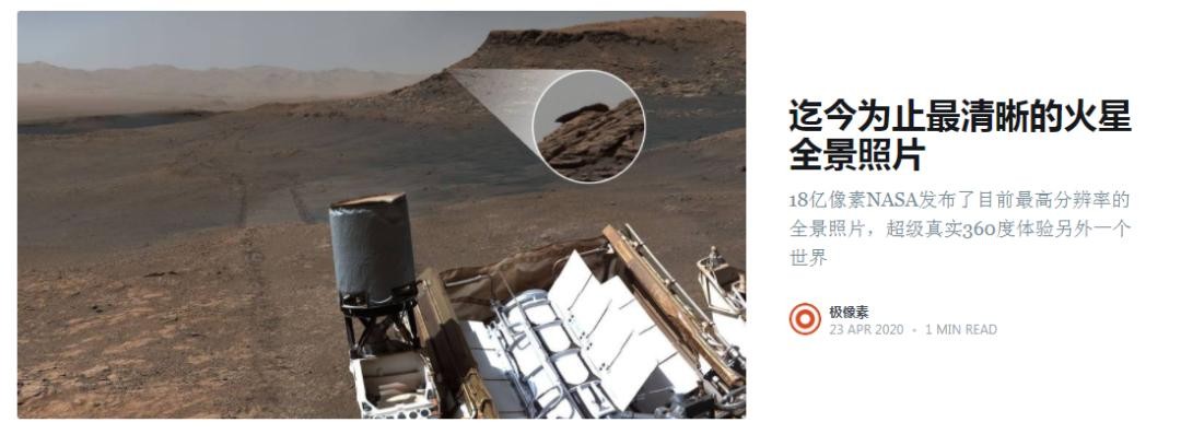 里面收录了迄今为止最清晰的火星全景照片。可以手动拖着画面观看照片上火星上的景象。
