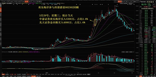3、欢乐海岸是多个席位一起操作合作,才能称为欢乐海岸;否则不能算作欢乐海岸,只能是单独的营业部。如经常出现中泰证券欢乐海岸的一个席位,那就不算欢乐海岸,常常上演一日游;如独自出现华泰证券益田路荣超商务中心,这就是猪肉荣,不是欢乐海岸。