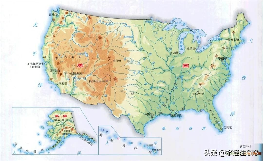 北美洲地形复杂多样,既有高耸的山脉和高原,又有广阔的平原和盆地,这些地形特征共同构成了北美洲丰富多彩的自然环境和人文景观。