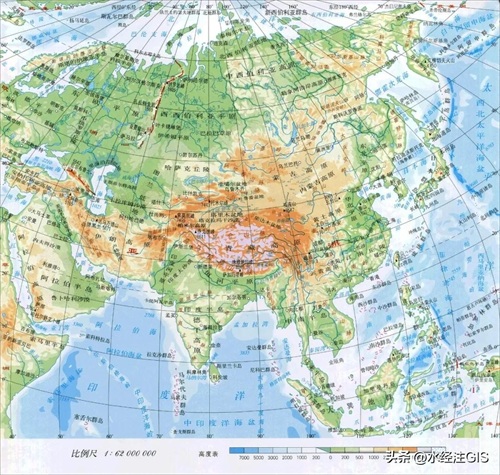 亚洲地形复杂多变,以高原、山地为主,中部高耸且多崇山峻岭,四周相对低洼,分布着众多平原、丘陵和盆地。
