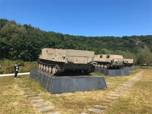 穿过这条开阔地,对面的山峦就是俄罗斯国境线,当年苏联远东军的钢铁洪流就是从这个方向滚滚而来。日军修建的要塞最近也与俄罗斯一河之隔。