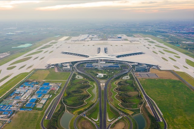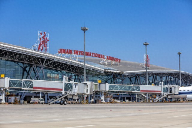 1.济南市:济南遥墙机场(历城区),位于中国山东省济南市历城区和章丘区交界处,距市中心30公里,为4E级民用国际机场,是中国重要的入境门户和干线机场之一。此外,该机场是山东省规模第二的机场,旅客吞吐量也在稳步增长。济南遥墙国际机场于1992年7月26日建成通航,2022年8月27日上午,济南遥墙机场二期改扩建工程建设推进会在遥墙国际机场举行,获悉正在建设的济南国际机场二期改扩建工程,将预留地铁、高铁接入条件。二期改扩建工程总投资500.84亿元,本期飞行区及航站区土建工程按目标年2035年、年旅客吞吐量5500万人次进行建设。飞行区按4F等级进行建设,新建两条3600米长的跑道、60万平方米的航站楼,新建167个各类机位的站坪及173个机位的站坪。