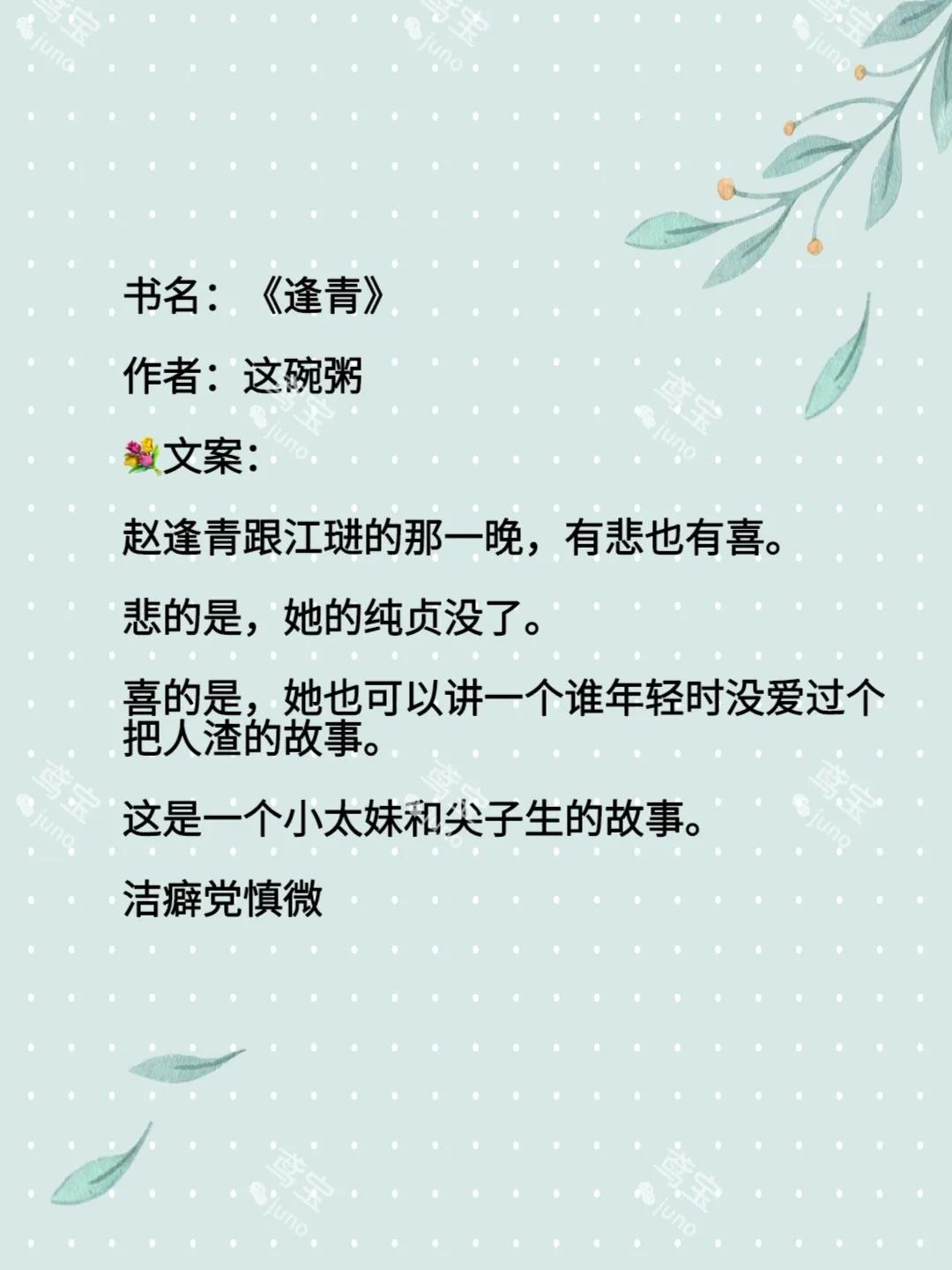 女主赵逢青是一个某种意义上的小太妹,她活的特别随心所欲,没有任何人能够约束住她,直到,她遇到了男主——江琎。